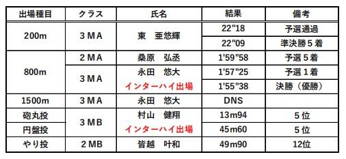 永田(800m)と村山(砲丸投・円盤投)は7月28日(日)~8月1日(木)に行われるインターハイ(博多の森陸上競技場)へ出場します。