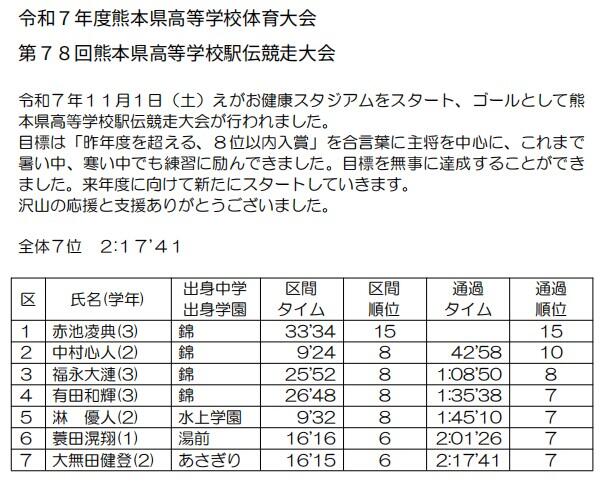 令和7年度 第78回熊本県高等学校駅伝競走大会