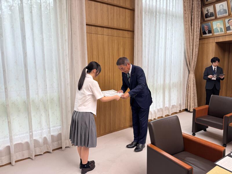 先日、県議会棟に作品を展示される生徒を対象にした感謝状贈呈式が行われました。