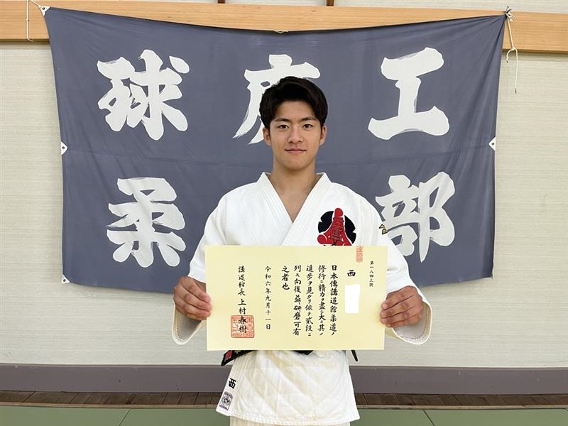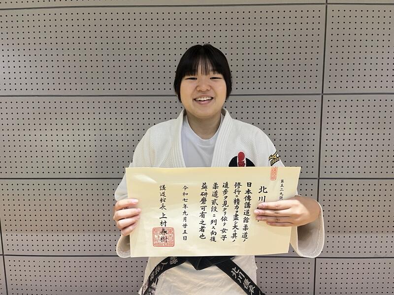 令和7年熊本県夏季昇段審査において、柔道二段に北川選手が合格、昇段しました!おめでとうございます!!