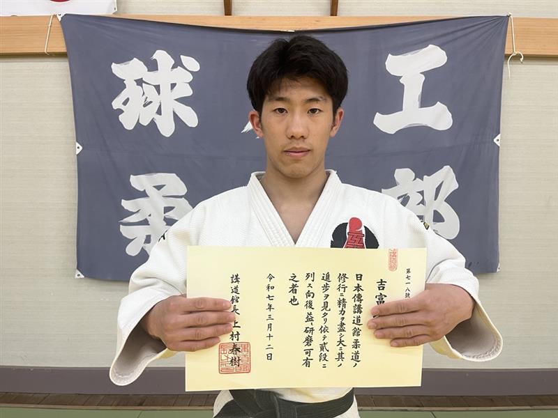 令和7年熊本県冬季昇段審査において、柔道二段に吉富選手が合格、昇段しました!おめでとうございます!!