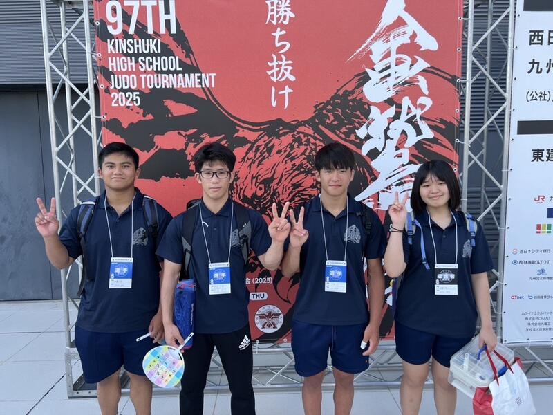 福岡市で行われた令和7年度金鷲旗高校柔道大会の男子団体戦に3人で臨み、1回戦は東京都の城西高校と対戦し2人残しで勝利、2回戦は北海道高校総体チャンピオンの北海高校と対戦し敗退しました。3年生にとっては高校最後の団体戦で、今まで頑張ってきたことを十分に出して切ってくれた大会となりました。