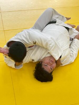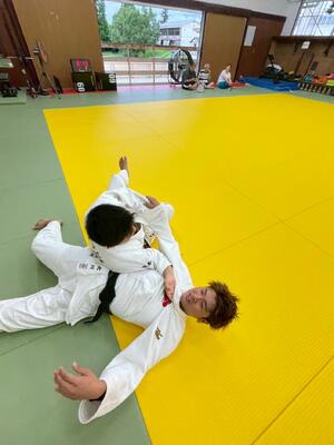 また、本校柔道部OBの岩川先輩も5限目の講義後に練習に来られ、勉強も柔道も共に頑張っていました‼️