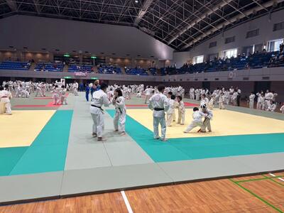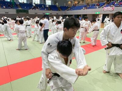 熊本県警察および熊本刑務所の先生方を招いて、心身の鍛錬及び競技力の向上を図るとともに、県内の柔道家の交流を行うことにより、参加者の縦・横のつながりを構築することを目的として人吉スポーツパレスで開催されました。