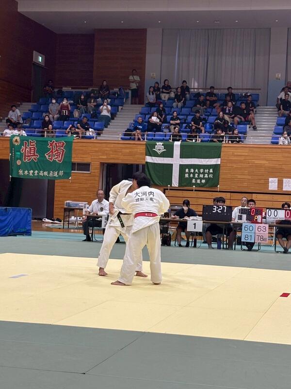 人吉スポーツパレスで第63回城南地区柔道選手権大会が開催され、高校男子軽量級で吉富選手、高校男子重量級で大河内選手がそれぞれ3位になりました。