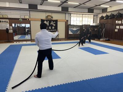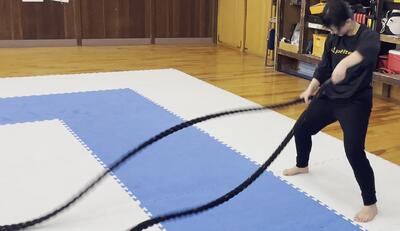 最後にバトルロープで追い込む部員たち!