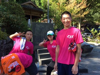 熊本県下益城郡美里町坂本にある日本一の石段として名高い“御坂遊歩道日本一石段”に登ってきました。毎年恒例の行事で、本校剣道部はこの3333段を今年も2往復しました。早い生徒は40分ほどで駈け登り、2時間とちょっとで2往復しました。最後は頂上の神社にて、来る11月の新人戦への必勝祈願を行いました。