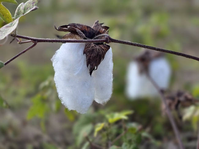 洋綿は上向きに綿が実りますが、和綿の綿は下向きに綿が実ります