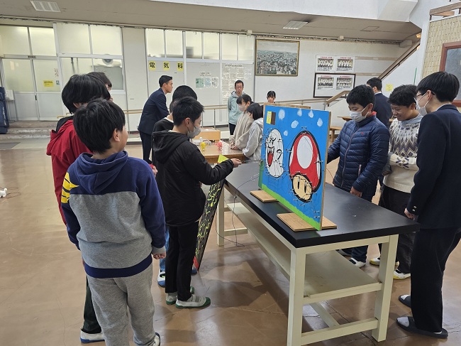 12月4日(木)2・3限目に電気科3年生27名による『第2回ものづくり教室』が実施されました。これまで、生徒達が3年間、高校で学んできた知識や技術を指導することで『学ぶ側』から『教える側』となり、人吉西小学校6年生2クラス43名に指導しました。