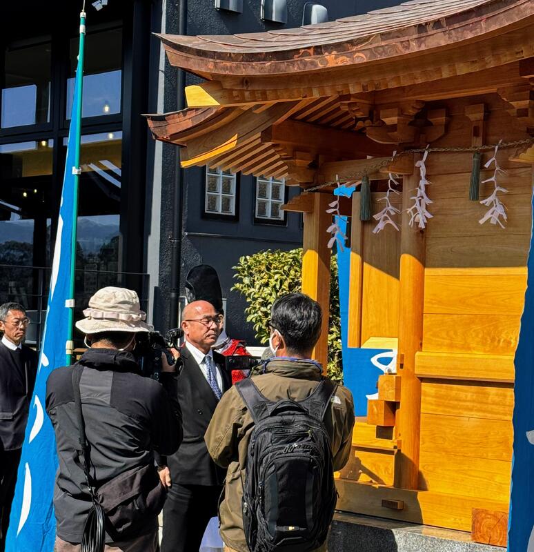 熊本県人吉市の球磨川沿いにて、熊本県立球磨工業高等学校 伝統建築専攻科の2年生が制作した水天宮の新しい祠(ほこら)の設置を祝う神事が執り行われました。