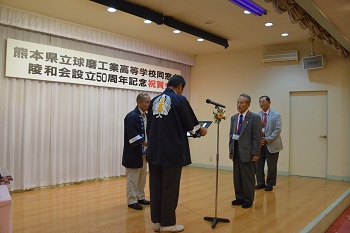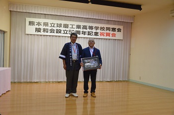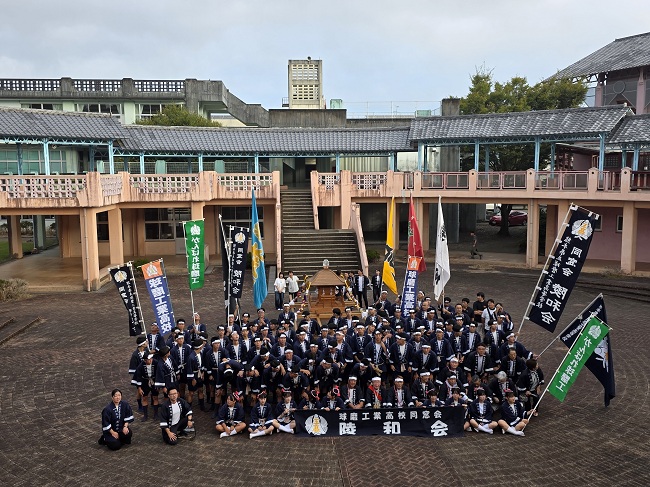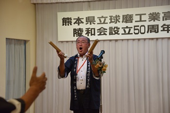 最後に、中村陵和会副会長より、「君達は、球磨工業高校へ入学してきて頑張ったからこそ全国大会出場というチャンスを掴みました。全国大会では、球磨工業高校生という“誇り”を持って戦ってください。君達にとって、全国大会の経験は貴重な体験であり必ず将来に役立ちます。全国には1万2千人以上の同窓会の先輩方が応援をしています。持てる力を十分に発揮して、君達の頑張りに期待してます」と、激励の言葉を述べられました。