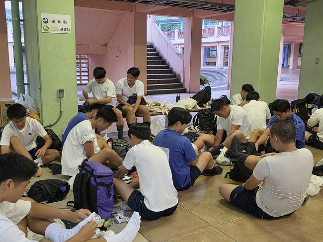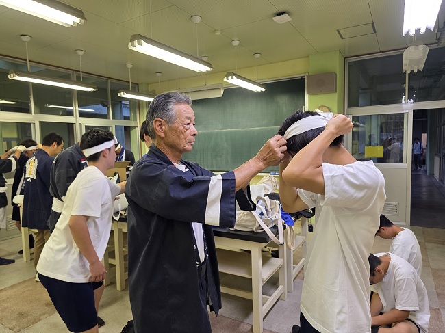 ハチマキを結ぶ陵和会(同窓会)の方々