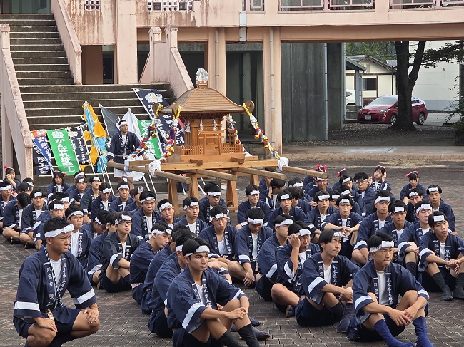 10月4日(金)に球磨工業高校において、『みこし担ぎ』練習を行いました。