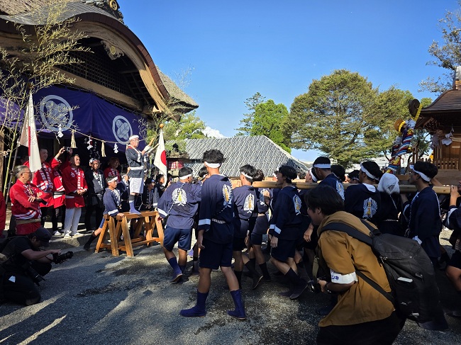 神輿部長を筆頭に、初めて神輿を担ぐ生徒たちに指導を行いました。
