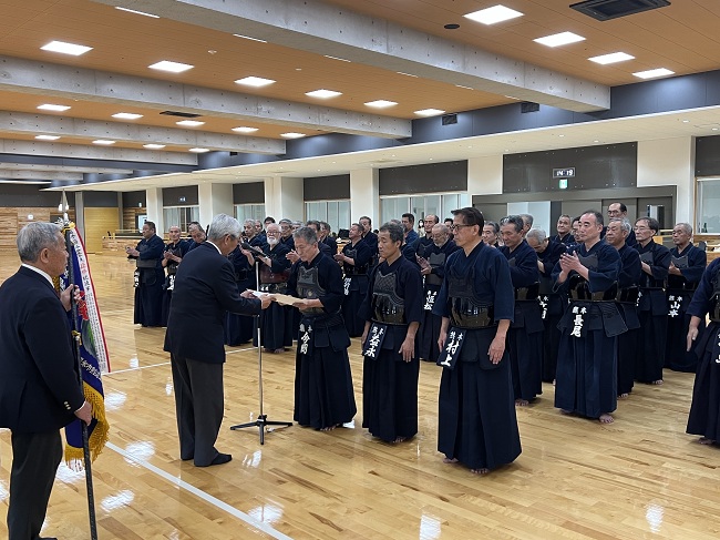 表彰式(賞状を受取る熊本県大将の今岡さん)