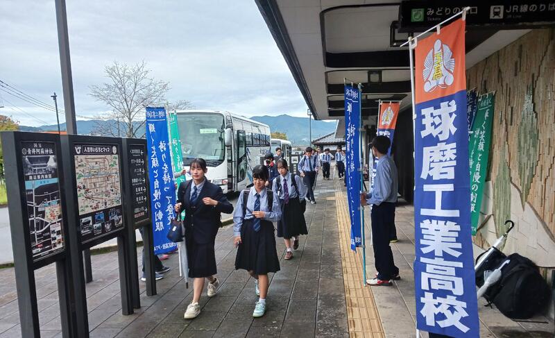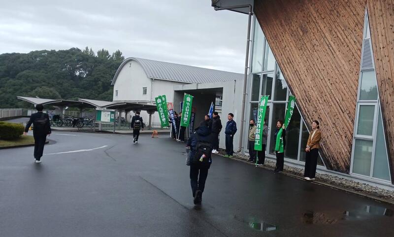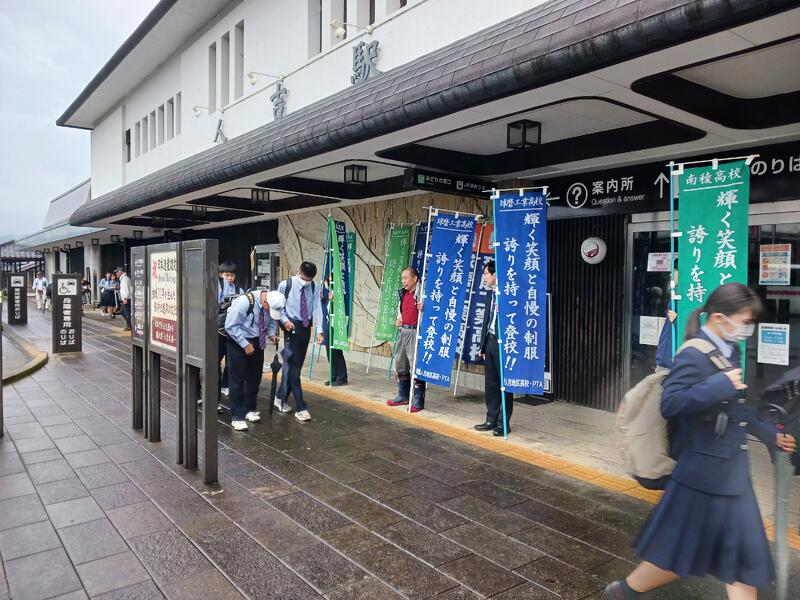 11月1日(金)は『くまもと教育の日』ということで、人吉高校・南陵高校・球磨中央高校・球磨工業高校の4校の育友会役員の方々と合同の挨拶運動を実施しました。