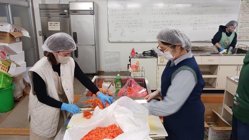 12/12(木)育友会の皆様には長距離走大会の炊き出しの為、早朝よりお越し頂いて炊き出しの下ごしらえをして頂きました。朝早い時間から本当にお世話になりました。