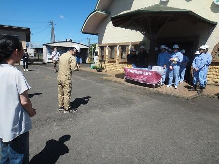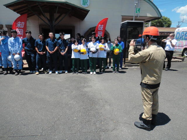 記念撮影、主催者挨拶後、味岡建設より鉄道工事に関する諸注意。