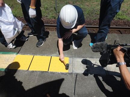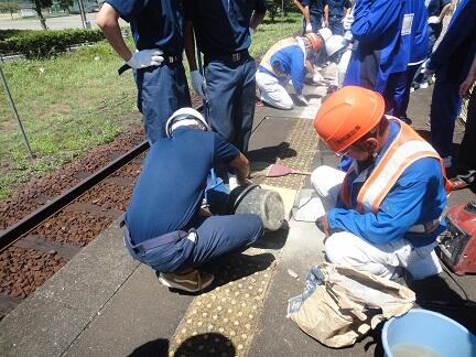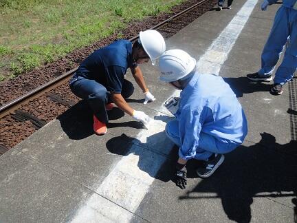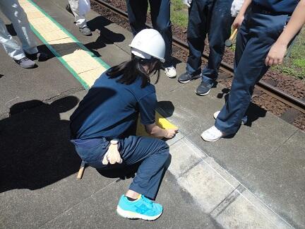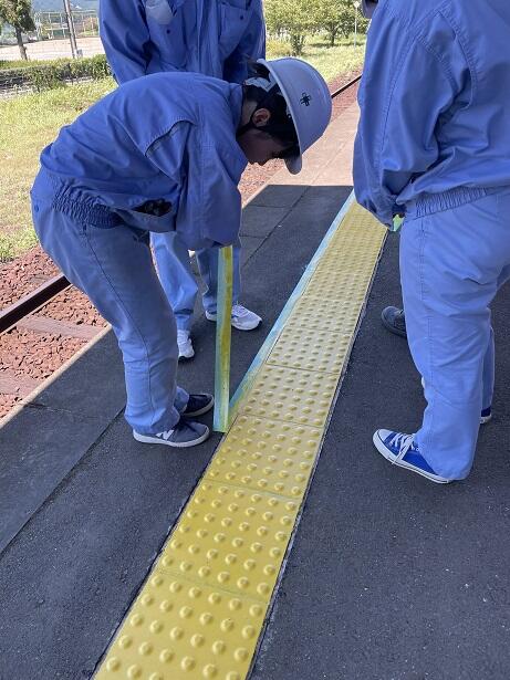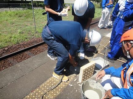 熊本スーパーハイスクール(KSH)「多良木駅舎点字ブロック張替工事」(その1)