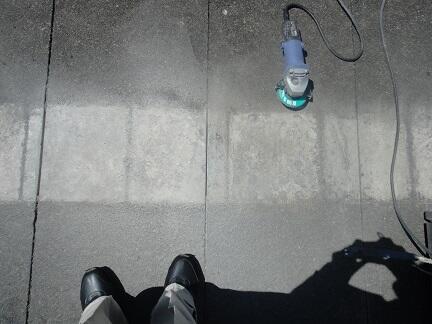 作業①高圧洗浄機、デッキブラシによる水洗い、汚れ落とし
