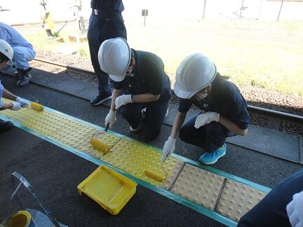 作業②点字ブロックを塗装