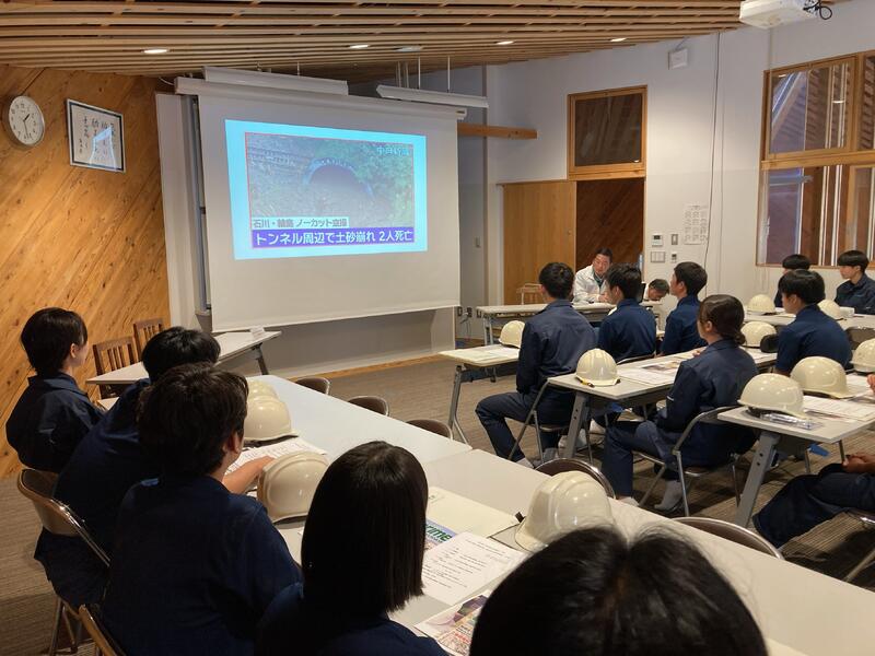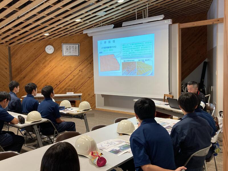 まずは、会議室にてガイダンスが行われ、法面についてや今回の工事についての詳しい説明を聞くことができました。