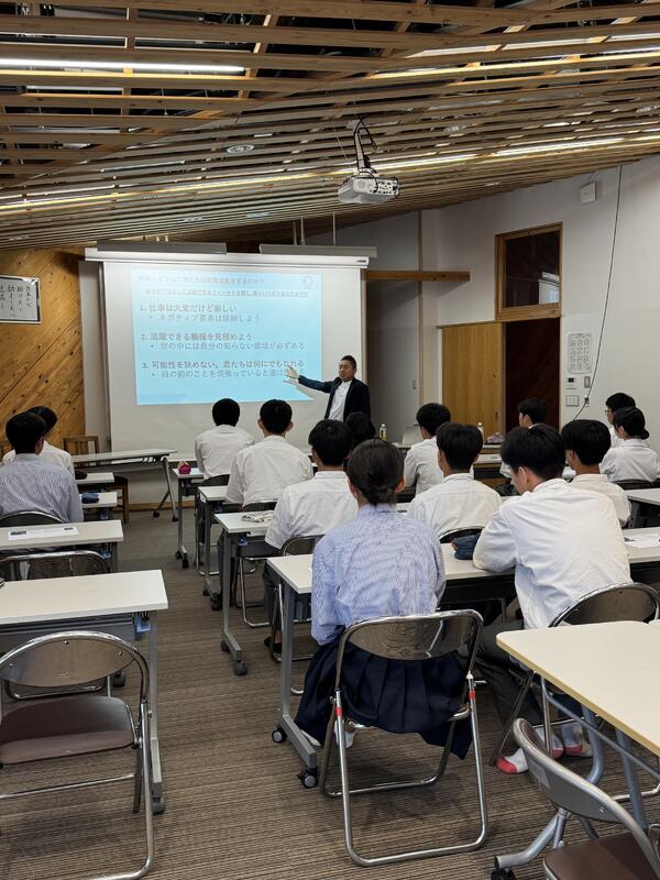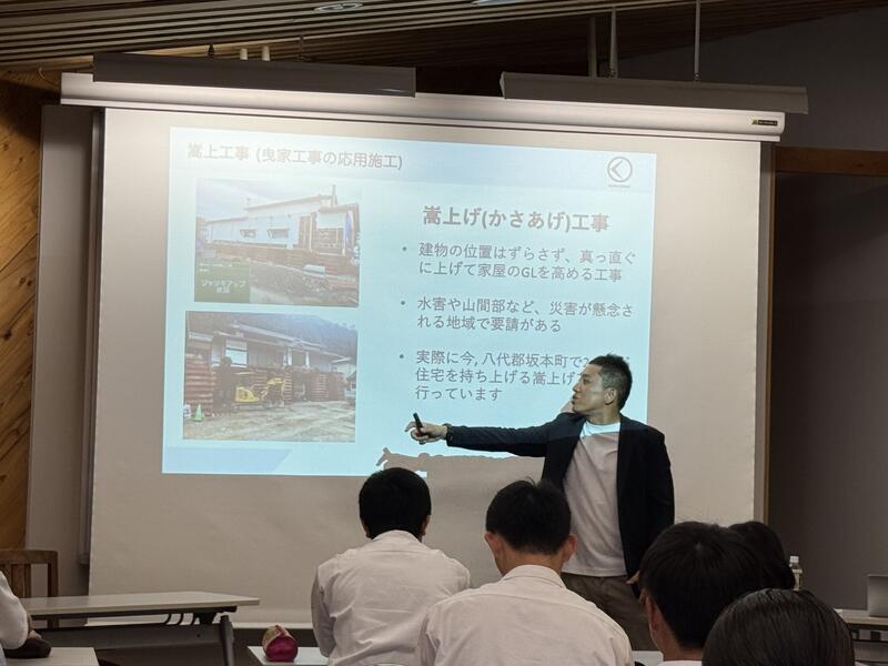 講義の中では、“曳家”という仕事を通して、働くことの楽しさややりがいについて話してくださり、生徒たちも話に引き込まれて最後まで集中して聞いていました。
