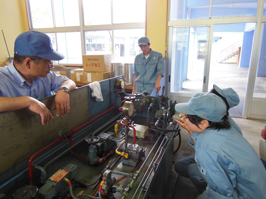 ショベルカーに使われる油圧装置、水をくみ上げるポンプ、自動車のエンジンの性能がどれくらいあるかの実験を行います。