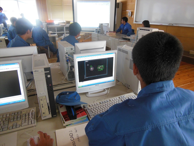 AutoCADソフトを利用して、パソコン上で図面を引く練習をします。希望者は、CAD検定を受験することができます。