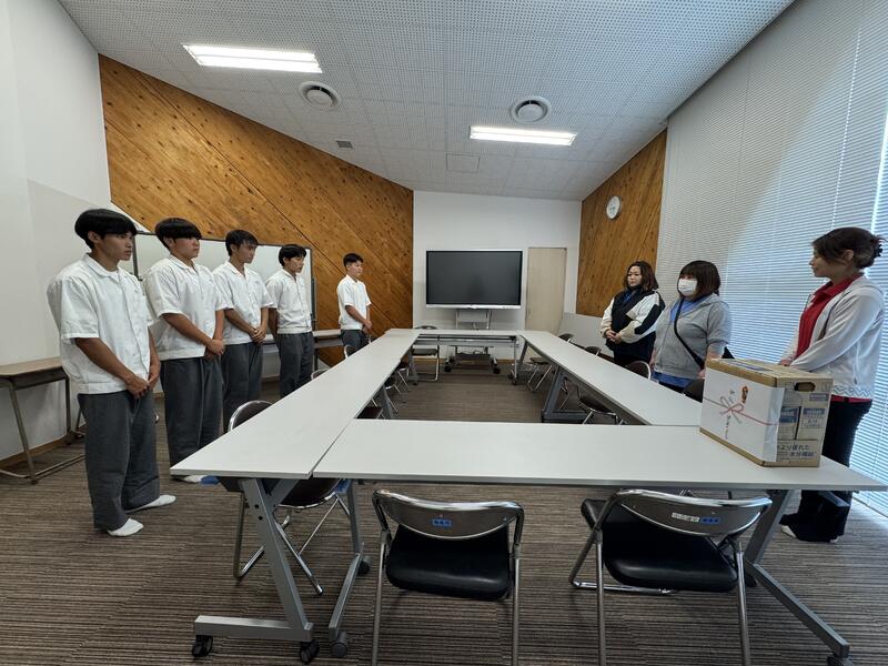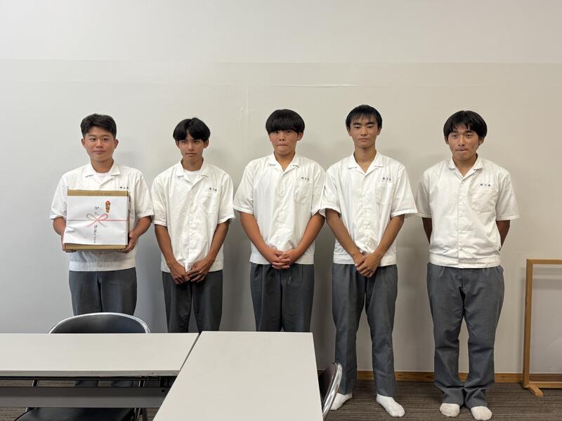 三和建設様には、毎年このようなご厚意を賜り、全校生徒・教職員ともに深く感謝しております。いただいた飲料は、明後日の大会での水分補給に大切に使わせていただきます。