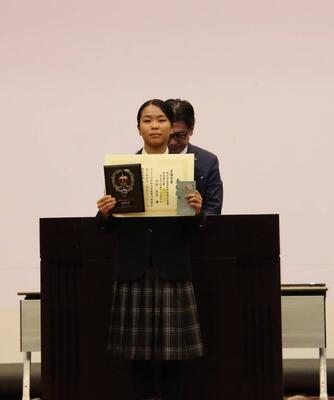 このコンクールは、産業教育(工業、商業、農業、家庭など)を学ぶ生徒が、日頃の学習や研究、将来への夢などをテーマに、自らの考えをまとめ発表するものです。多数の応募の中から、最優秀賞という最高の栄誉に輝きました。