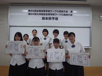 ワープロ部は、早く正確に文章が入力できるよう、日々練習をしています。その結果、全国商業高等学校協会主催ビジネス文書実務検定1級取得やワープロの大会で優秀な成績を残し、九州大会・全国大会に出場することもあります。中学生の皆さん、少しでも興味関心がある人は、練習風景を見に来てください。待っています。