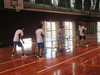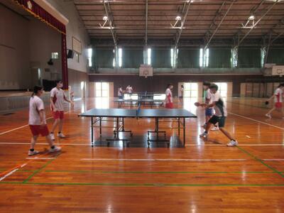 卓球部は、一球入魂をモットーに、日々の活動に取り組んでおり、日々自分の課題を克服するために自分たちで練習メニューを考え活動しています。