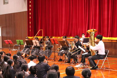 7月の吹奏楽コンクールや12月の新人コンクールに向けて日々練習を頑張っています!!コンクール以外にも、地域のお祭りや校内イベントなど、たくさんの演奏の機会があるので、自分の好きな曲を提案して演奏することができます!!人数は少ないですが、仲良く和気あいあいと、聴いている人が楽しくなるような表現を目指して活動しています!!