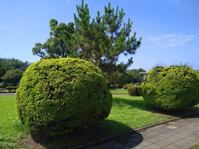 それは、2人の学校技師の方が、毎日暑い中、木々などの成長の度合いを見ながら、造形も考えながら整備されているからです。今日7月6日は、それまでの雨続きの日々とは違い、晴れわたりました。外の温度は、ゆうに30℃を越えていたはずです。しかも、太陽の光がこれでもかというくらいに降りそそいでいました。そうした環境のなか、学校技師のおふたりは、あふれる汗をぬぐいながら、一所懸命に整備に取り組まれていました。本当に感謝の気持ちでいっぱいになりました。