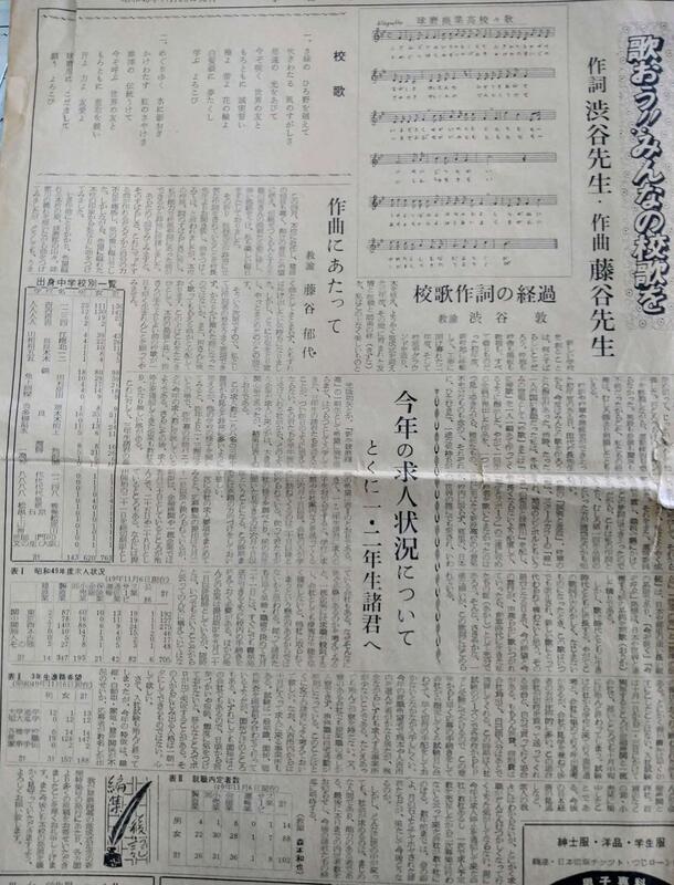 さて、卒業式の式辞の中で本校の校歌についてのお話をしました(校長ブログ49)。実は、この話には続きがあります。作詞をされた渋谷 敦(しぶや あつし)先生はこうおっしゃっています。「歌は時代とともに生き、時代とともに消長する。やがてこの歌詞が古めかしく、なじまないものになったとき、この歌はいつでも改正され、新しい歌にとって代られても構わないと思う。その踏台(ふみだい)となる日まで、今の願望と今の喜びが、声高らかに歌いつがれていったら、草創時代に生きた私たちの証(あかし)として十分であろう。そんな、ささやかな、一途な願いが、この歌詞にはこめられている。」 私はこれを読んだ時に、現状に留まらない進取の気概を感じました。同時に、先人の足跡を大切にしながら、世界とつながって生きていくことこそが、地球規模の課題解決のために必要であり、そのことは不変のものであるという渋谷先生の確固たる信念を感じます。校歌誕生から50年。体育大会当日、「歌おう!! みんなの校歌を」