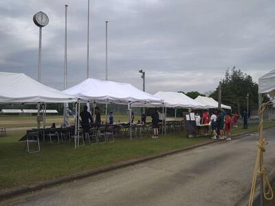 ▲当日の朝の準備、天気が心配