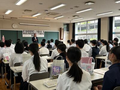 生徒たちは真剣に話を聞きながらしっかりとメモをとり、時には近くの人の意見を聞いたり自分の意見を伝えたりと、積極的に授業に参加していました。
