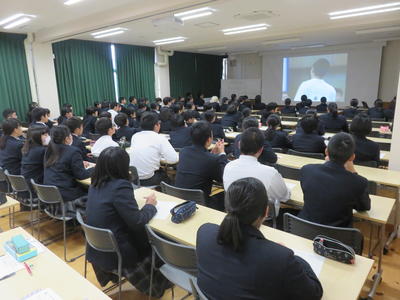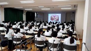 公益社団法人熊本県看護協会 人吉医療センター 助産師 嶽本さおり様に、「いのち輝く未来のために~『生命誕生』受胎から出産、子宮への旅~」というテーマで講演をしていただきました。実際のお産の映像もあり、生徒たちは真剣な様子で聞いていました。