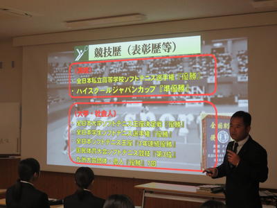 6限目1年生の球磨地域学では、体育科の戸塚先生より「夢を実現させるために!」というテーマでお話をいただきました。高校生、大学生時代にソフトテニスを通じて体験されたこと、学ばれたことを教えていただき、同じ高校生として、自分は目標を掲げ、挨拶や掃除、当たり前のことを当たり前に取り組み、人間性を高められているか、失敗を恐れずチャレンジし続けているか、感謝の気持ちを持ち続けているかなど、様々なことを振り返る時間となったのではないでしょうか。努力と工夫は無限。一人じゃない。この仲間とさらに高め合っていきましょう。