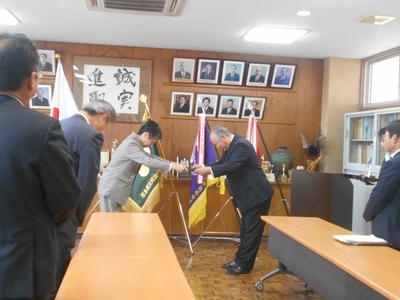 旧生徒会長の平瀬さん、新生徒会長の鞭馬くんが役員代表の挨拶を行い、校長より新役員へ委嘱状の交付が行われました。