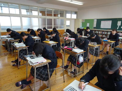 生徒は、1分も惜しんで真剣に考査に向き合っています。