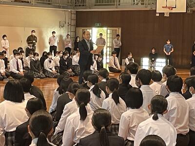 さて、コロナ禍で学んだこと、それは当たり前の毎日は本当に大切なものであり、その当たり前を守るためには、一人一人が、自分だけでなく、ほかの人のことを思いやりながら生きていかなければならないということでした。総体・総文、競技大会が当たり前にできるその裏には、皆さんのために最善を尽くし、努力されている多くの関係者の方がいらっしゃいます。そうした方々に対する感謝の気持ちを絶対に忘れないでください。