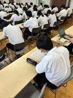2学期の始まりに伴い、始業式と表彰式が行われました。近年の酷暑の影響を受け、リモート開催となりましたが、生徒たちは画面を通して、真剣に話を聞いていました。午後からは、課題テストが行われ「難しかった」などの声が教室中に飛び交っていました。