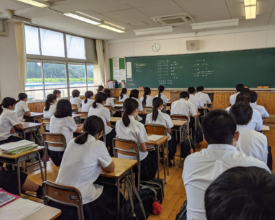 3年生は期末考査(最終日)、1・2年生は面談等の後に、写真のように教室にて放送で行われました。