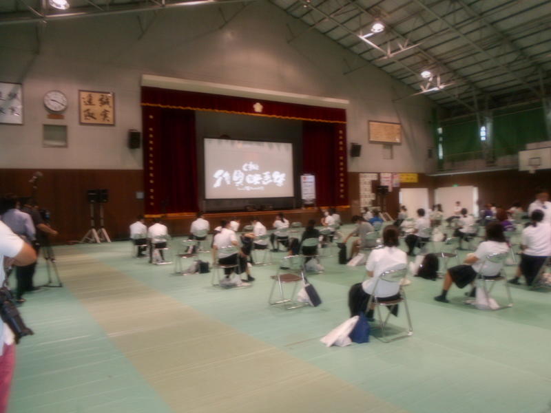 明日(10月4日・日)本校体育館で、9時30分からか開催される「くまもと復興映画祭2020」の準備設営が完了しました。