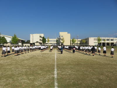 続いて、まだ避難経路を経験していない1年生全員を対象に、グラウンドへの避難訓練を行いました。みんなとても落ち着いて行動していました。続いて学年主任より、本日の講評と危機管理についての講話がありました。