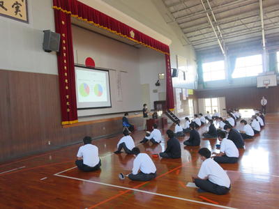 本日の1学年球磨地域学では、水上村役場の職員の方々をお迎えして、同村の地域活性化策について講話をしていただきました。