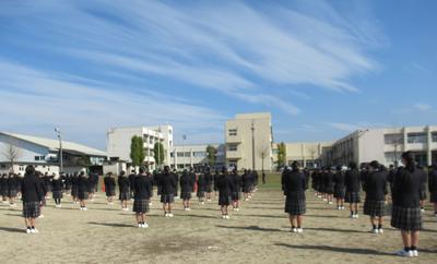 考査後にグラウンドで行われた全体指導では、身だしなみや心構えの話があり、気を引き締めたところです。