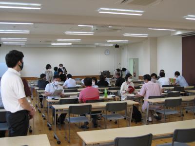 部活動の新主将・マネージャー、職員を対象に「心肺蘇生法・AED講習会」を実施しました。コロナ対策のため間隔を十分に取り、DVD視聴による研修を行いました。皆、真剣に受講していました。写真(右)は、学校の玄関(事務室横)に設置されているAEDです。他にも体育館や保健室にも設置されています。日頃からAEDの設置場所を確認しておくことが大切だと改めて感じました。